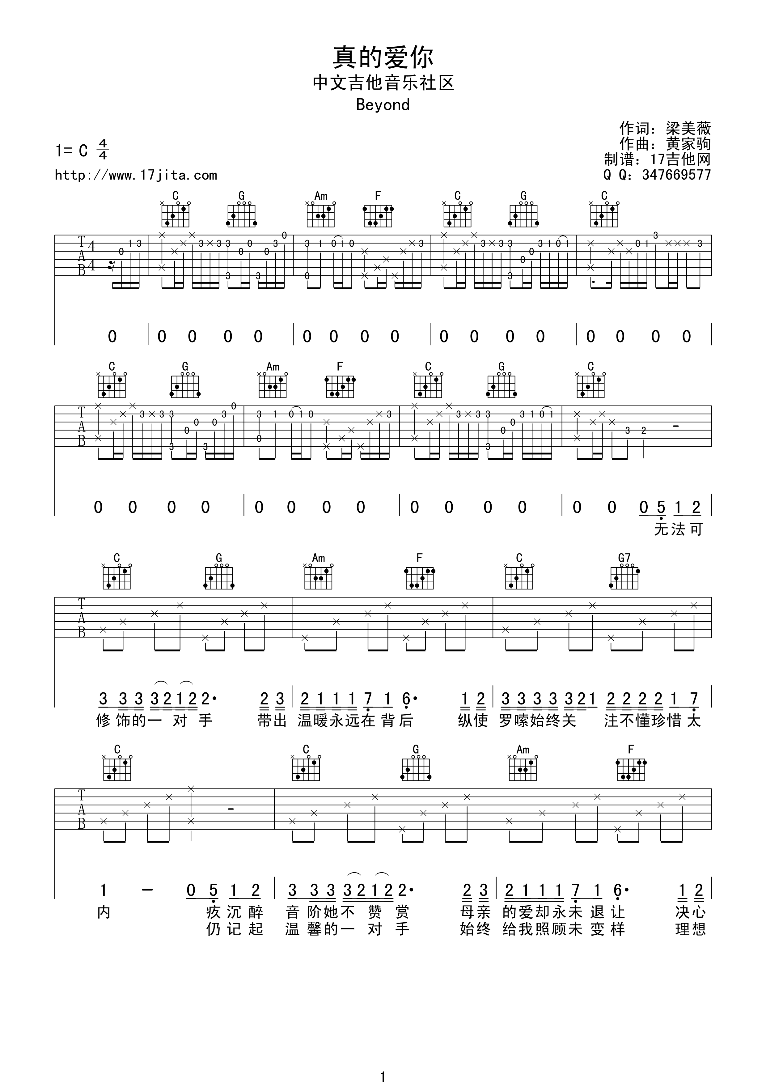 真的爱你吉他谱